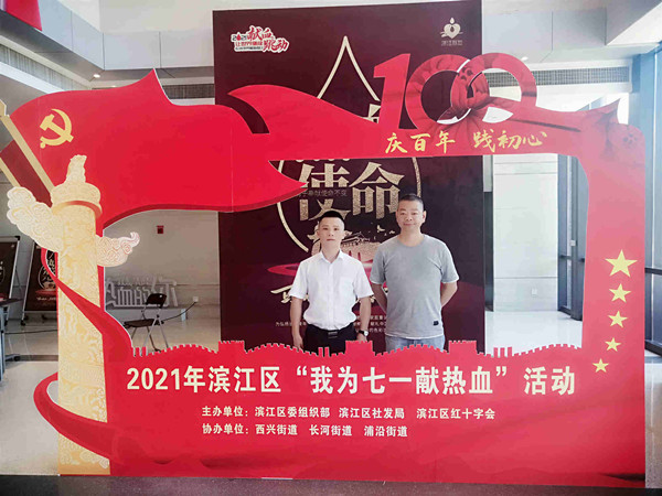 系列活动一:《庆百年,践初心,我为七一献热血》 组织党员干部参加浦沿街道举行的“我为七一献热血”活动。我支部陈勋明、羊平同志积极参加,两位退伍军人以饱满的热情为我国血液事业做出贡献,帮助更多需要帮助的人,体现党员先进性担当,以热血为党旗添彩,用真爱为党员争光,献血抗疫,守护生命。